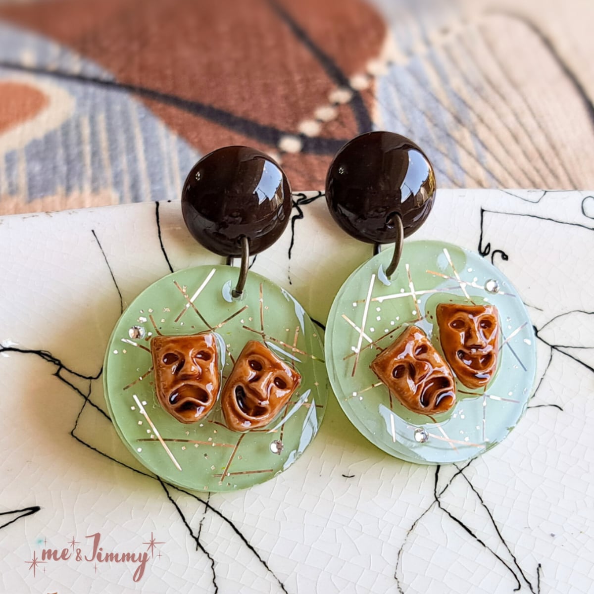 TWO FACE TV Lamp Inspired Earrings【ペールグリーン×ブラウン】トゥーフェイスピアス・イヤリング