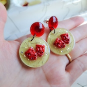 ・丸いベースはルーサイトジュエリーをイメージ。ブロンズゴールドのメタルラインや純銀ラメがレトロな高級感を引き立てます