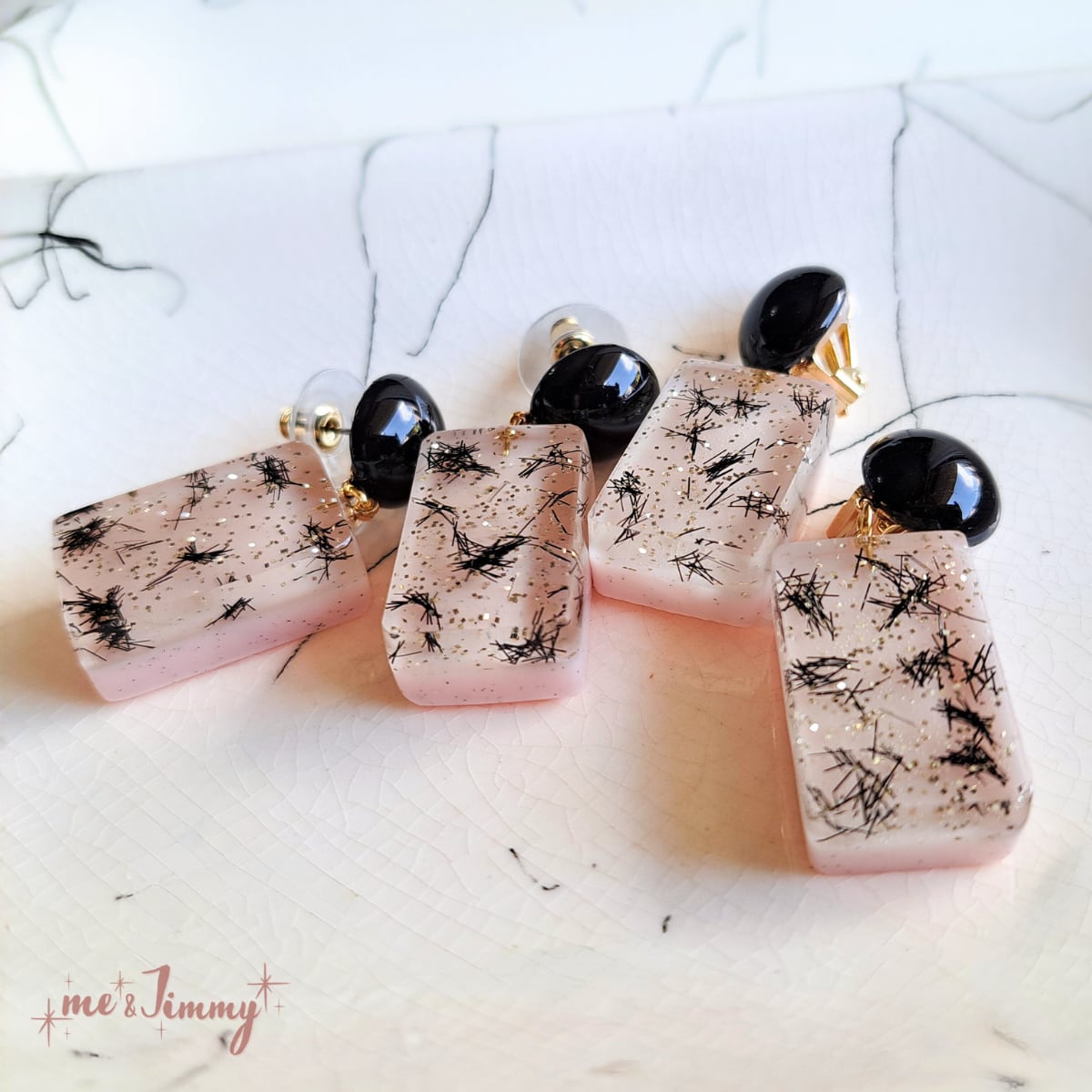 50's Style Starburst Tile Earrings【Rockabilly Pink】|黒ピンク カスリ柄ブロックピアス・イヤリング