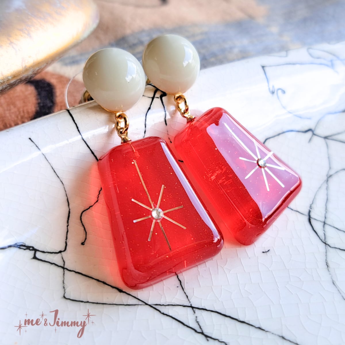 Atomic Perfume Bottle Earrings【ルビーレッドアイボリー】スターバースト香水瓶風ピアス・イヤリング
