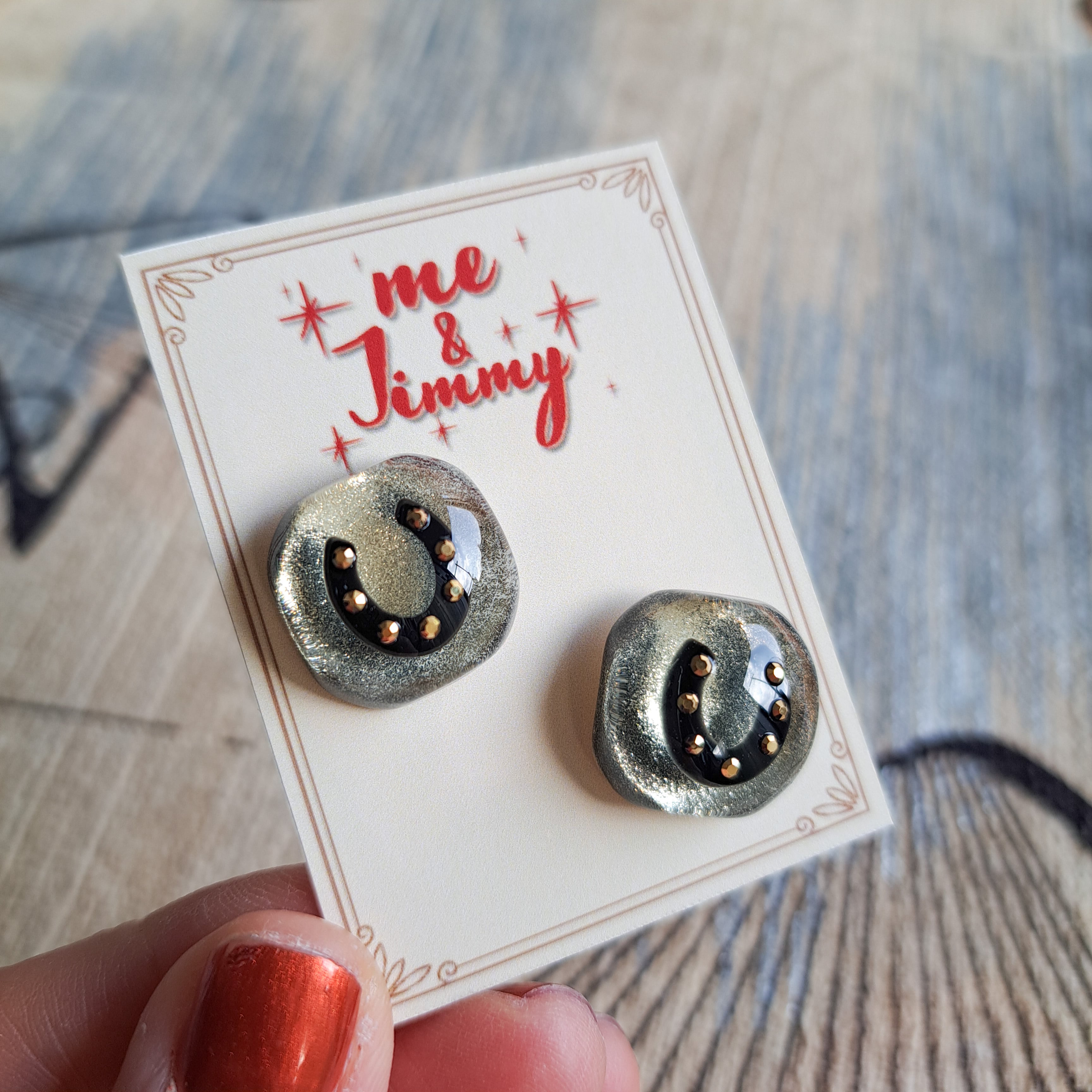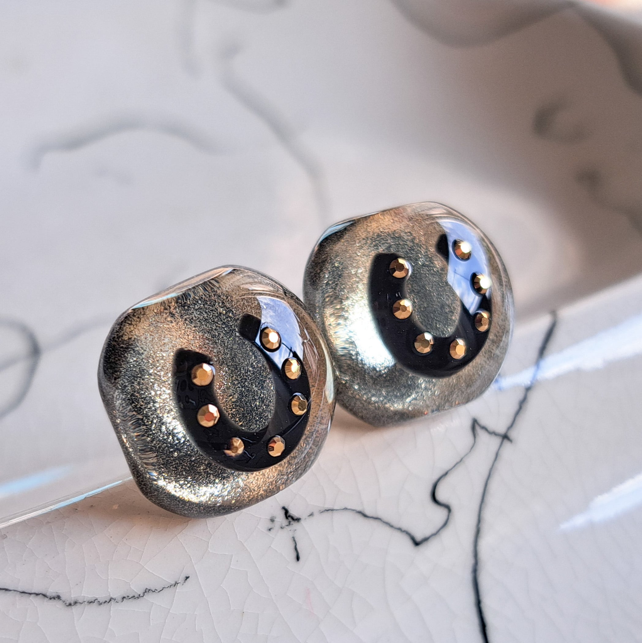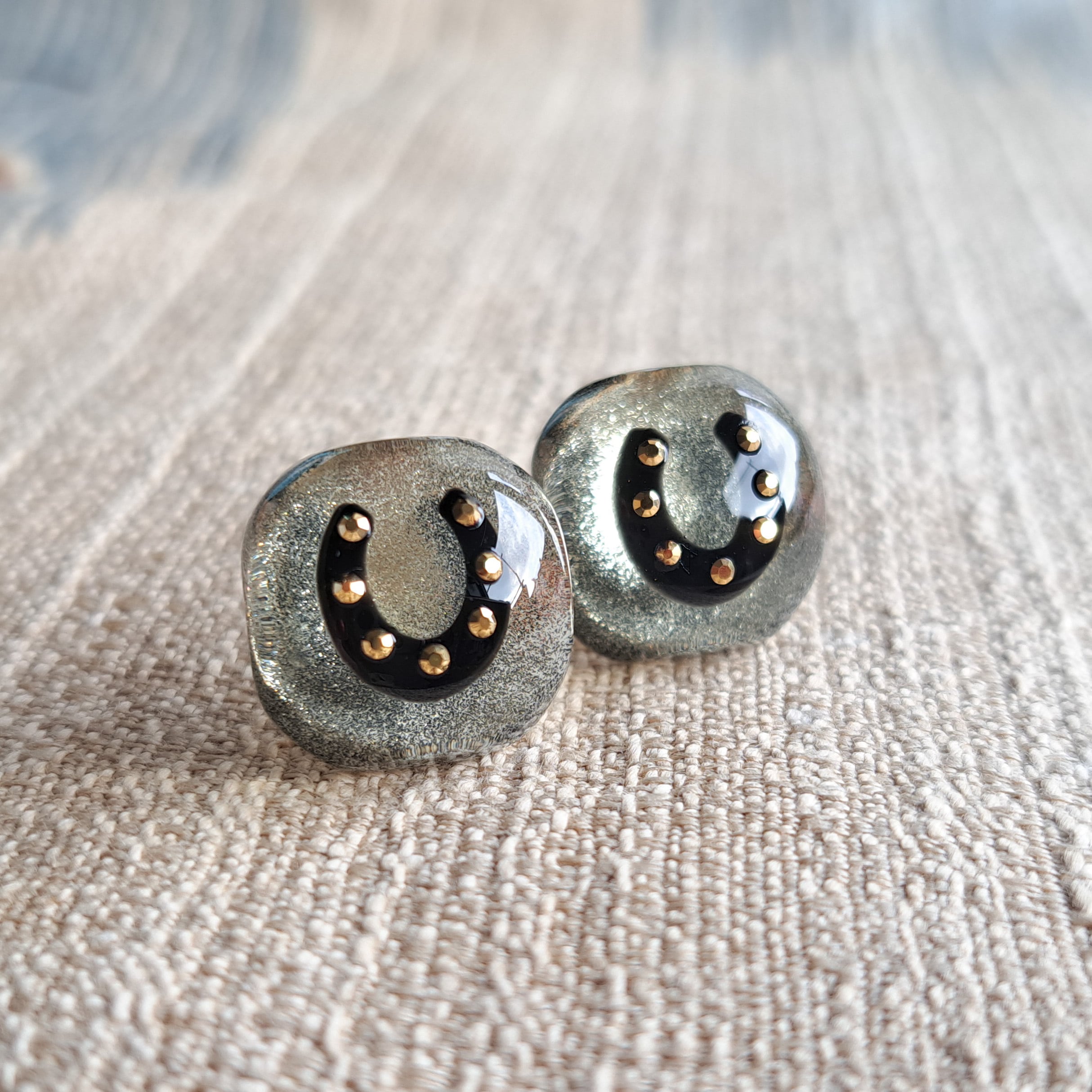 馬蹄モチーフ製作、埋め込みの過程で若干のずれや浮き、ラメのムラ感などが出る場合がありますが予めご了承下さい。