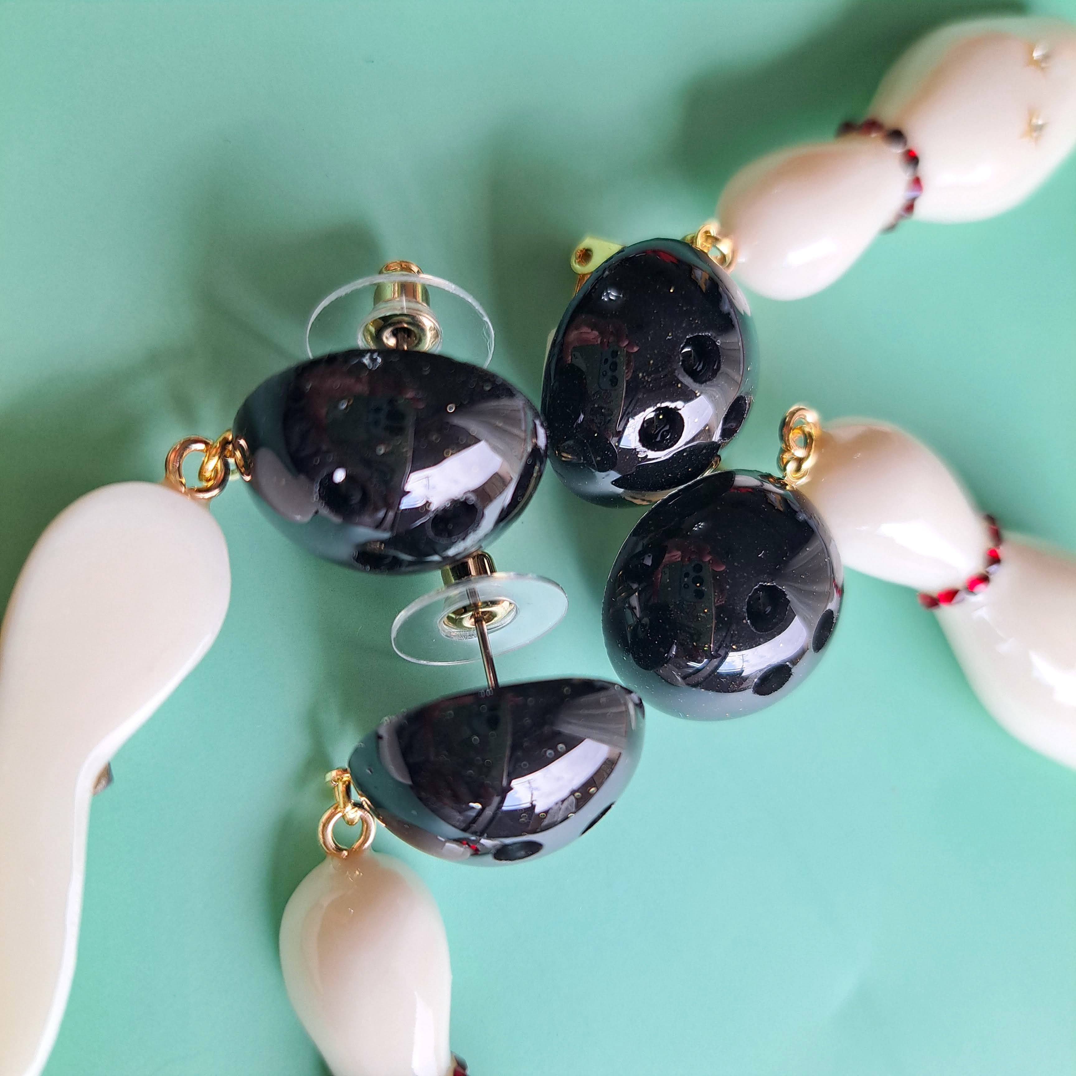 ◆レディのボウリングピアス・イヤリング◆【ブラック×アイボリーホワイト】/Rockabilly ロカビリー ロックンロール 50's