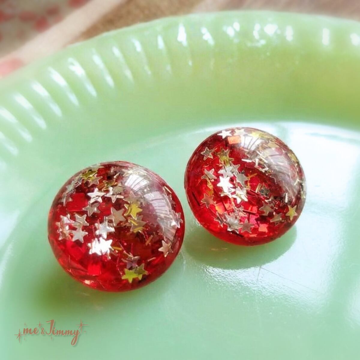 ✴Vintage Style Star Confetti サークル ピアス・イヤリング✴レッドビンテージリプロ