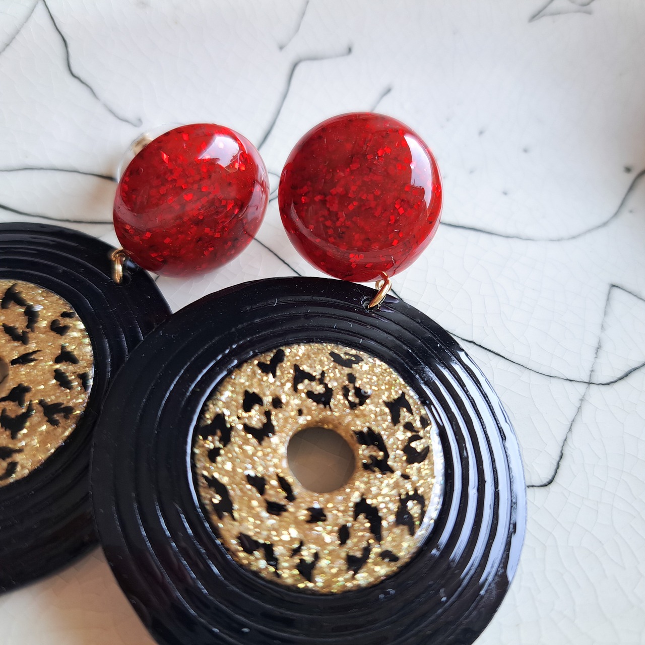 4.4cmの大ぶりレコード×ヒョウ柄×ホログラムのピアス・イヤリング