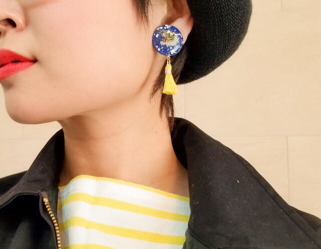 ◆blue×yellowスカ虎タッセルピアス・イヤリング◆/スカジャン ベトジャン フリンジイヤリング タッセルピアス ベトジャンスカ刺繍 アクセサリー ロカビリー Rockabilly 50's 60's 50s 60s ロック Rock ロックンロール | me & Jimmy