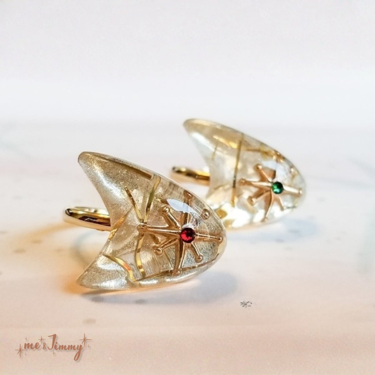 ロカビリー・50's好きにはおなじみアトミックブーメランは型からオリジナルで作り、1つ1つレジンにスターバーストを閉じ込めたリングにしました✴