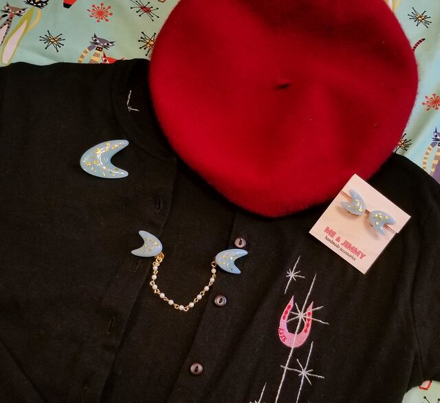 50’sには欠かせないブーメランモチーフのブローチです。