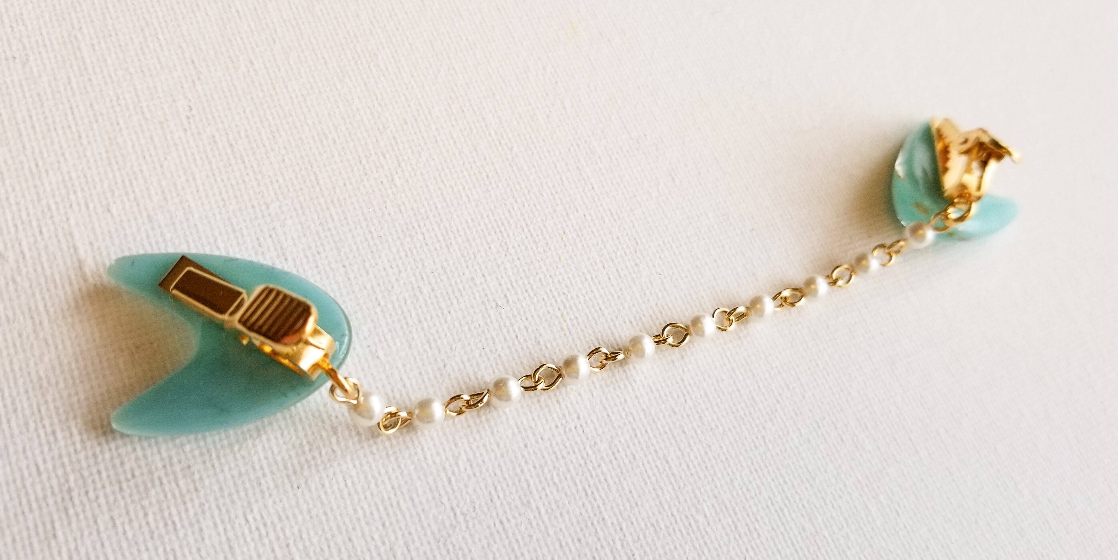 50’sには欠かせないブーメランモチーフのカーディガンクリップです。