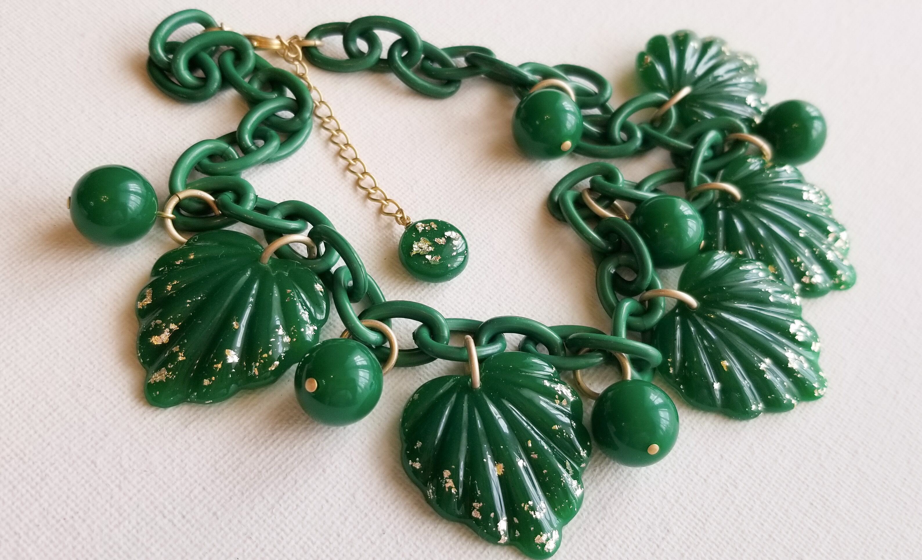 ✴Vintage Inspired Tropical green necklace ネックレス✴/Rockabilly ロカビリー ロックンロール 50's 50s 1950s 1950's 50年代 Rock 1950年代 40's 40s フィフティーズ アクセサリー ビンテージリプロ ルーサイト ヴィンテージ | me & Jimmy