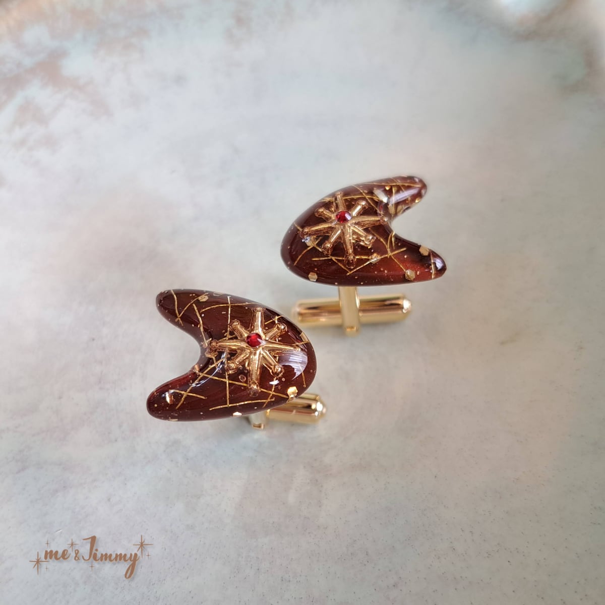 1950年代ファッションにぴったりなアトミックブーメランを型からオリジナルで制作したカフリンクスです。