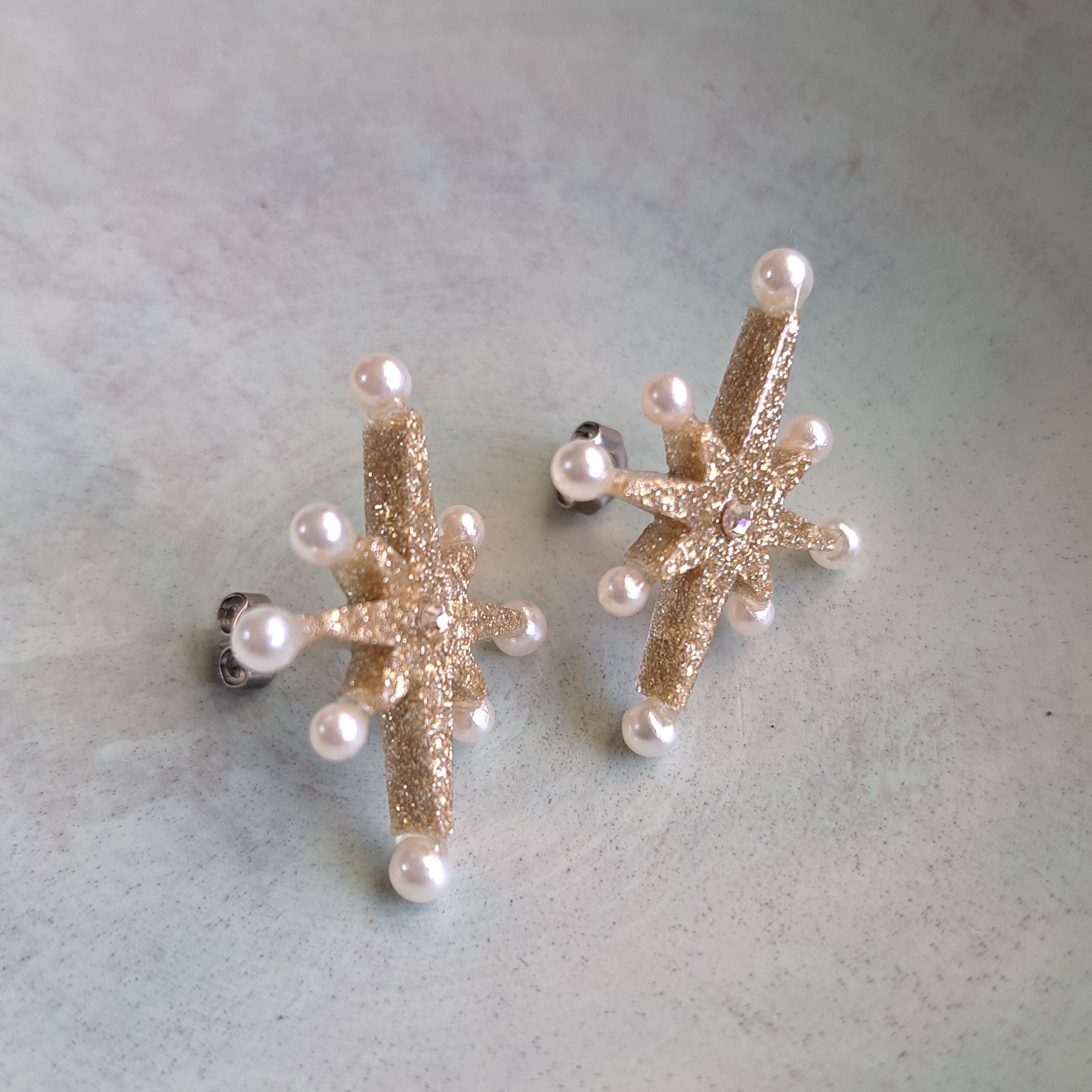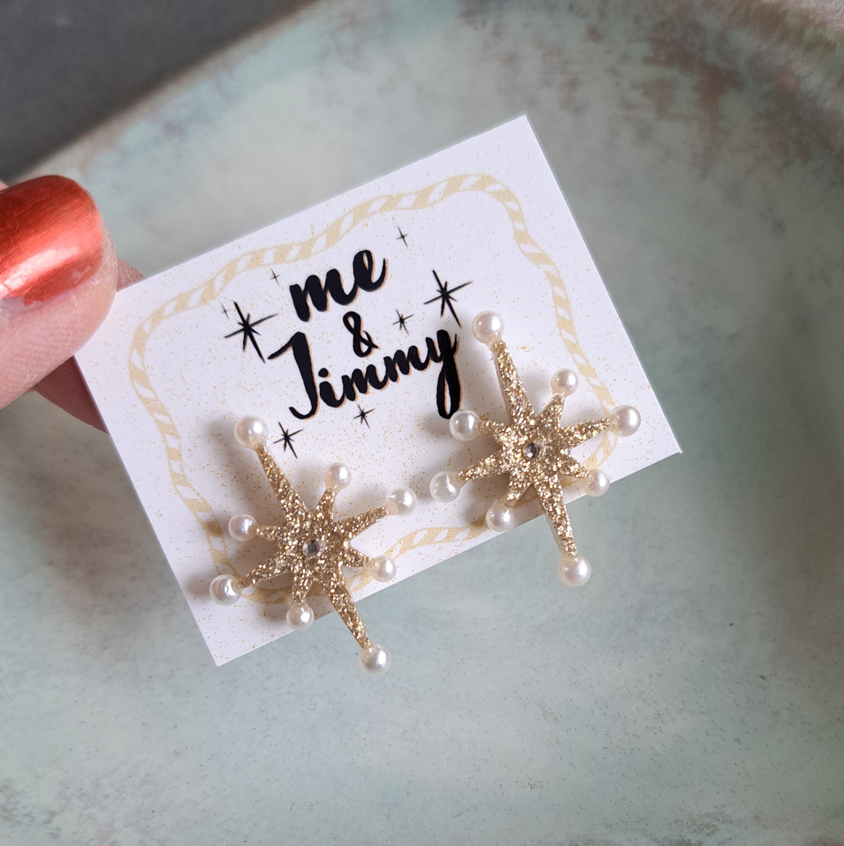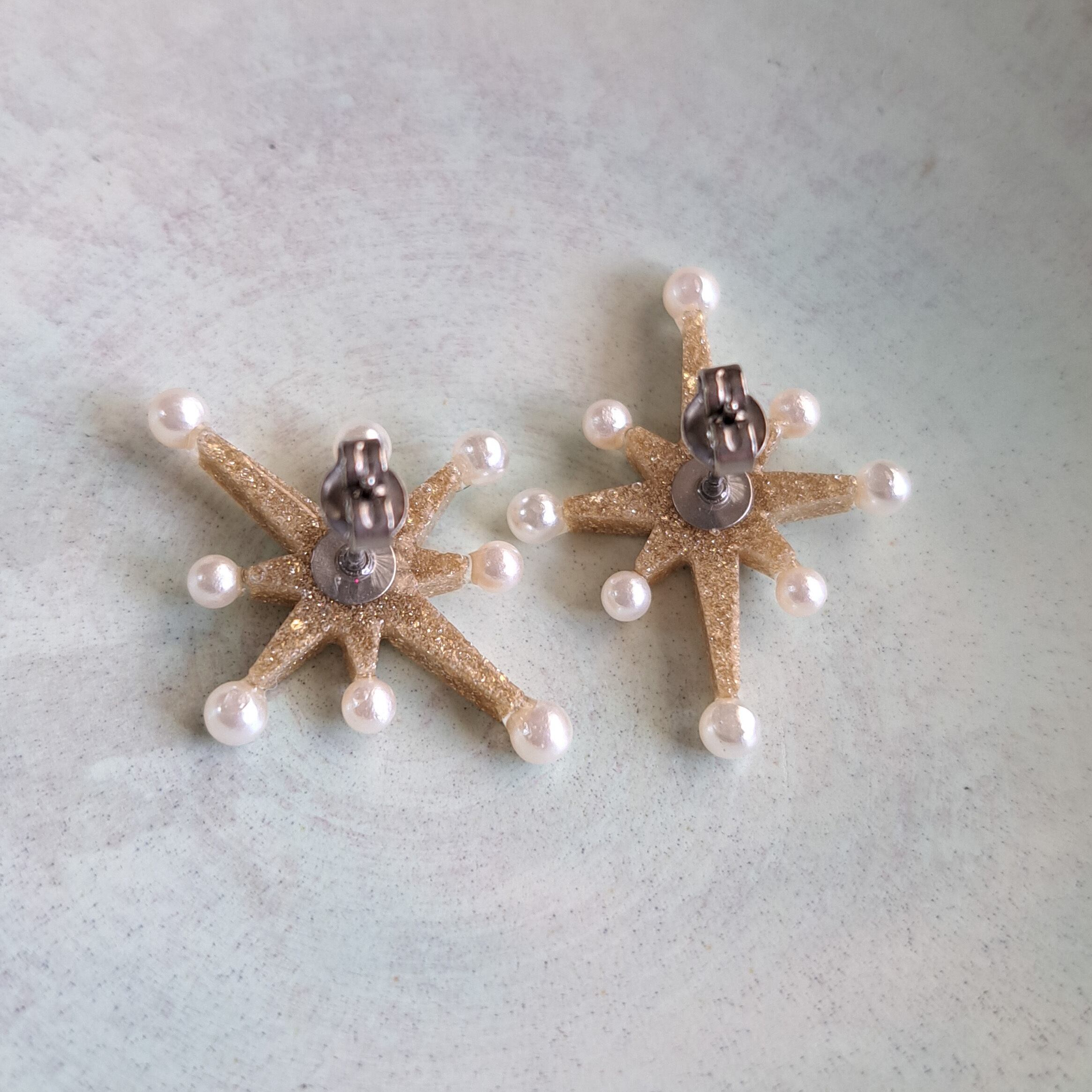 ✴パールスターバーストminiピアス・イヤリング✴【プラチナゴールド】 Pearl Starburst Mini Earrings/Rockabilly ロカビリー ロックンロール 50's 50s 1950s 1950's 50年代 ミッドセンチュリー スターバースト 1950年代 フィフティーズ アクセサリー ブーメラン さくらんぼ チェリー