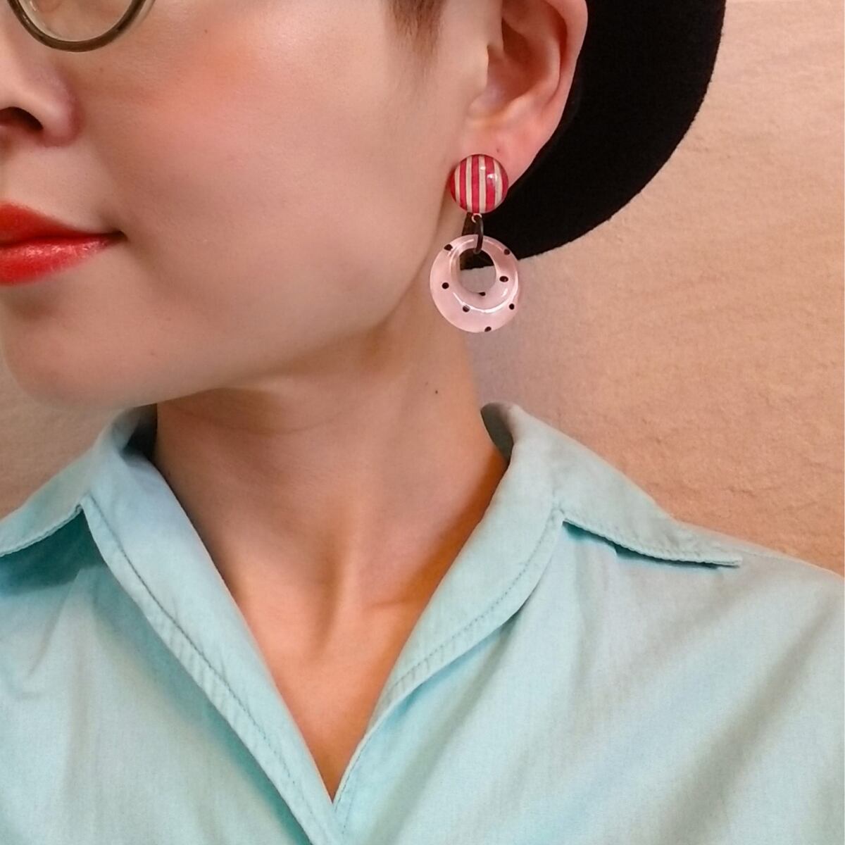 柄遊びが楽しい、1980年代のフィフティーズ・リバイバルをイメージしたたくさんのこだわりの詰まったピアス・イヤリングです。