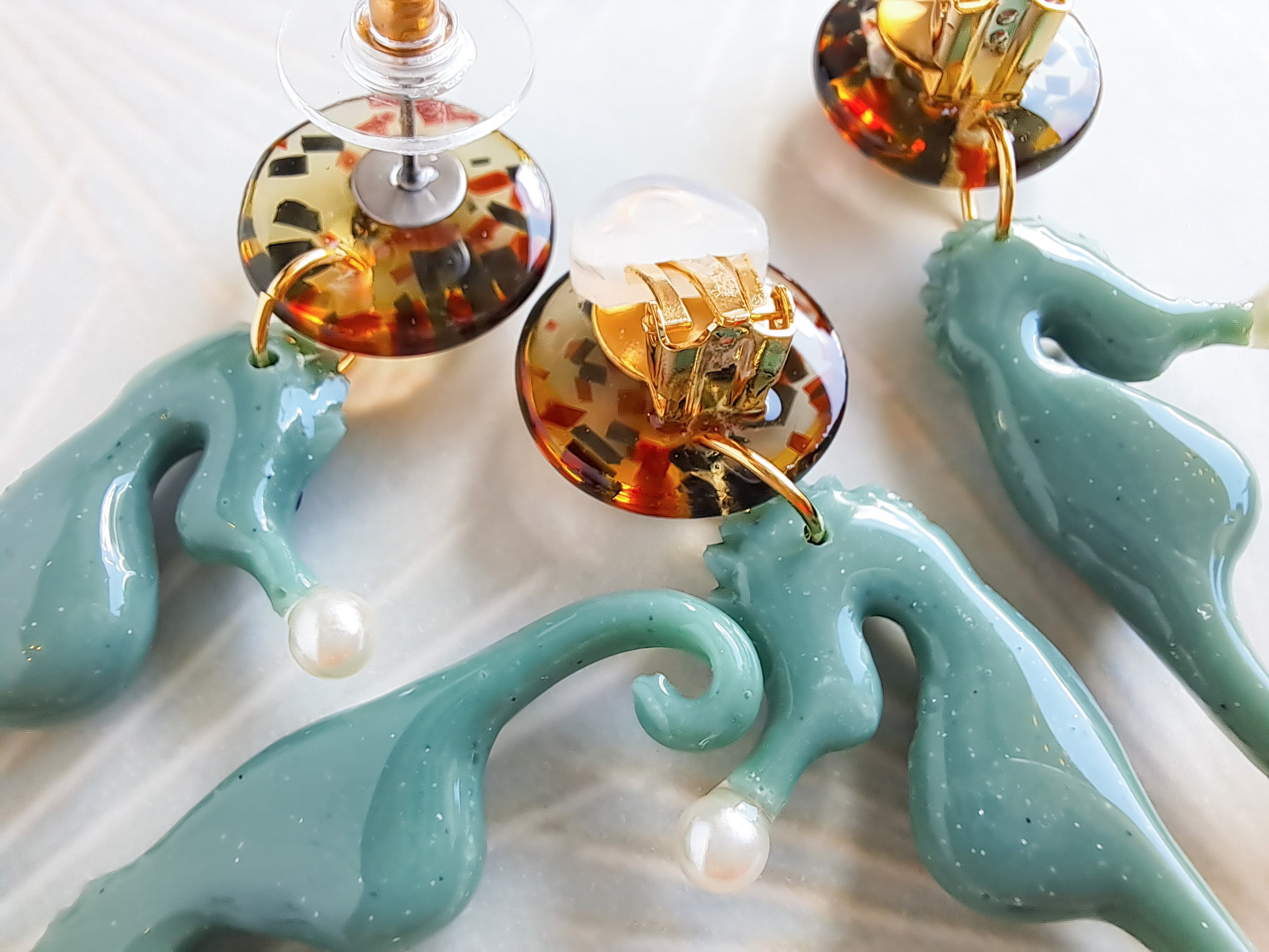 Bubbly seahorse earrings ピアス・イヤリング【セラドングリーン】タツノオトシゴピアス/Rockabilly ロカビリー ロックンロール 50's 50s 1950s 1950's 50年代 Rock 1950年代 tattoo マリン イカリ 錨 anchorフィフティーズ アクセサリー ヴィンテージ | me & Jimmy