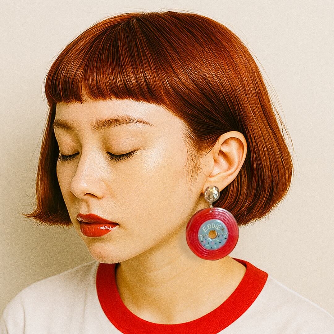80'sカルチャー、50'sリバイバル要素を詰め込んだ、4.4cmの大ぶりレコードピアス・イヤリングです。