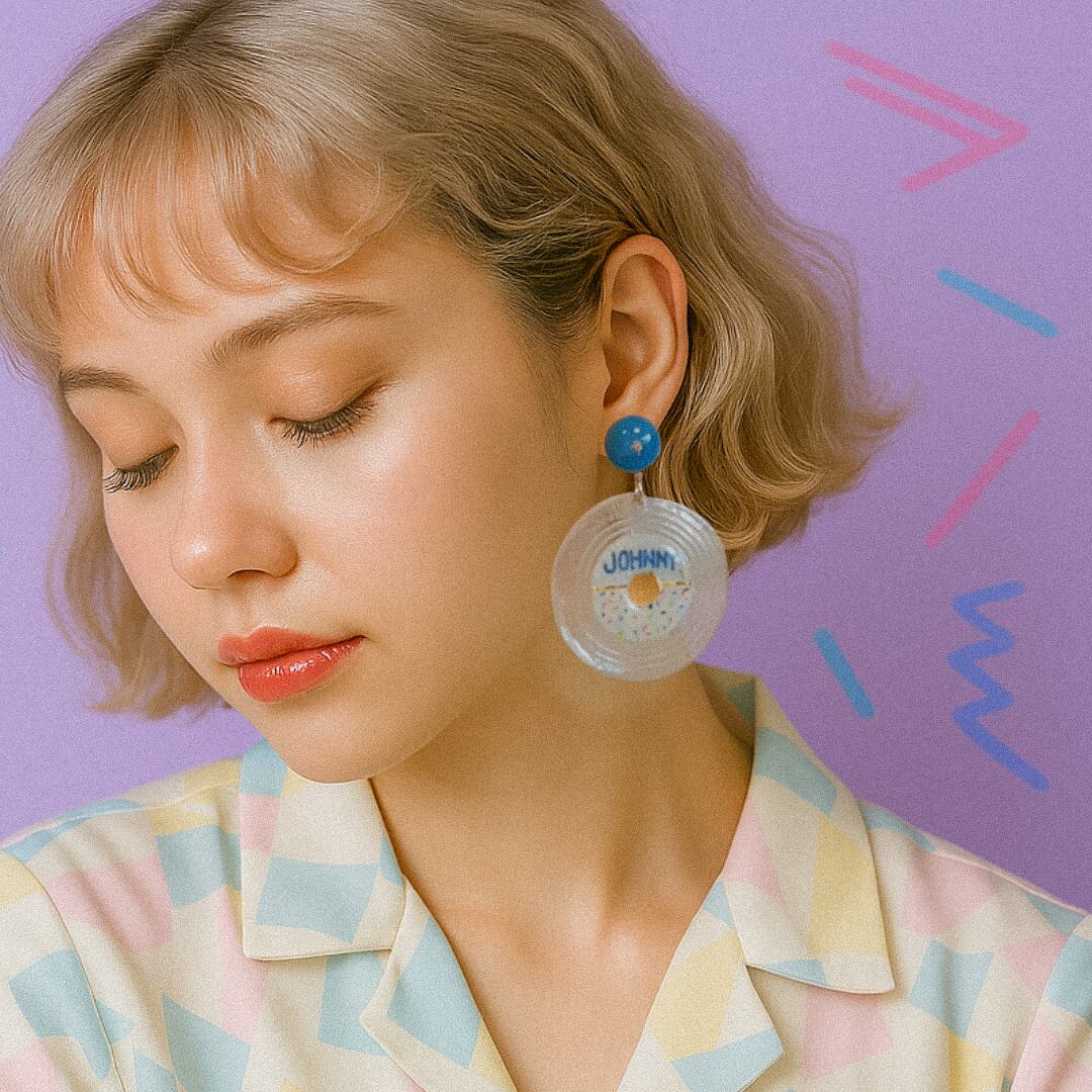 80'sカルチャー、50'sリバイバル要素を詰め込んだ、4.4cmの大ぶりレコードピアス・イヤリングです。