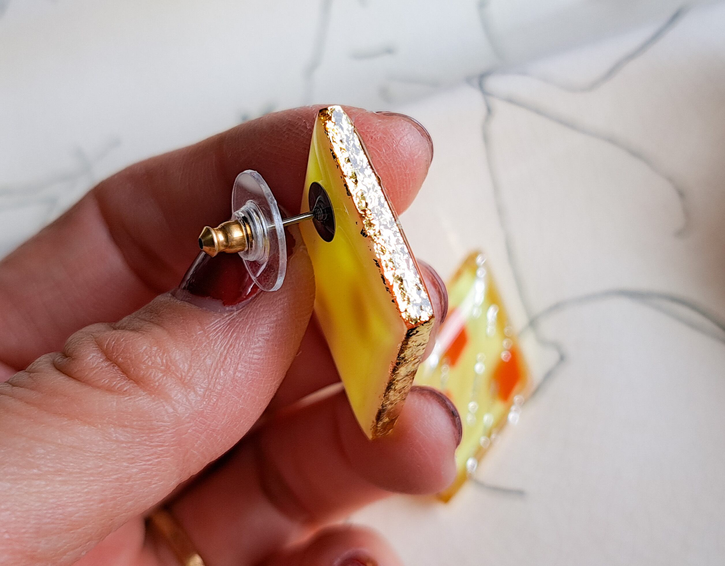 こちらはYellowは、こっくりしたカスタードイエローベースに、オレンジブラウンのダイヤ型を埋め込み、ランダムなシルバーのラインでまとめました。