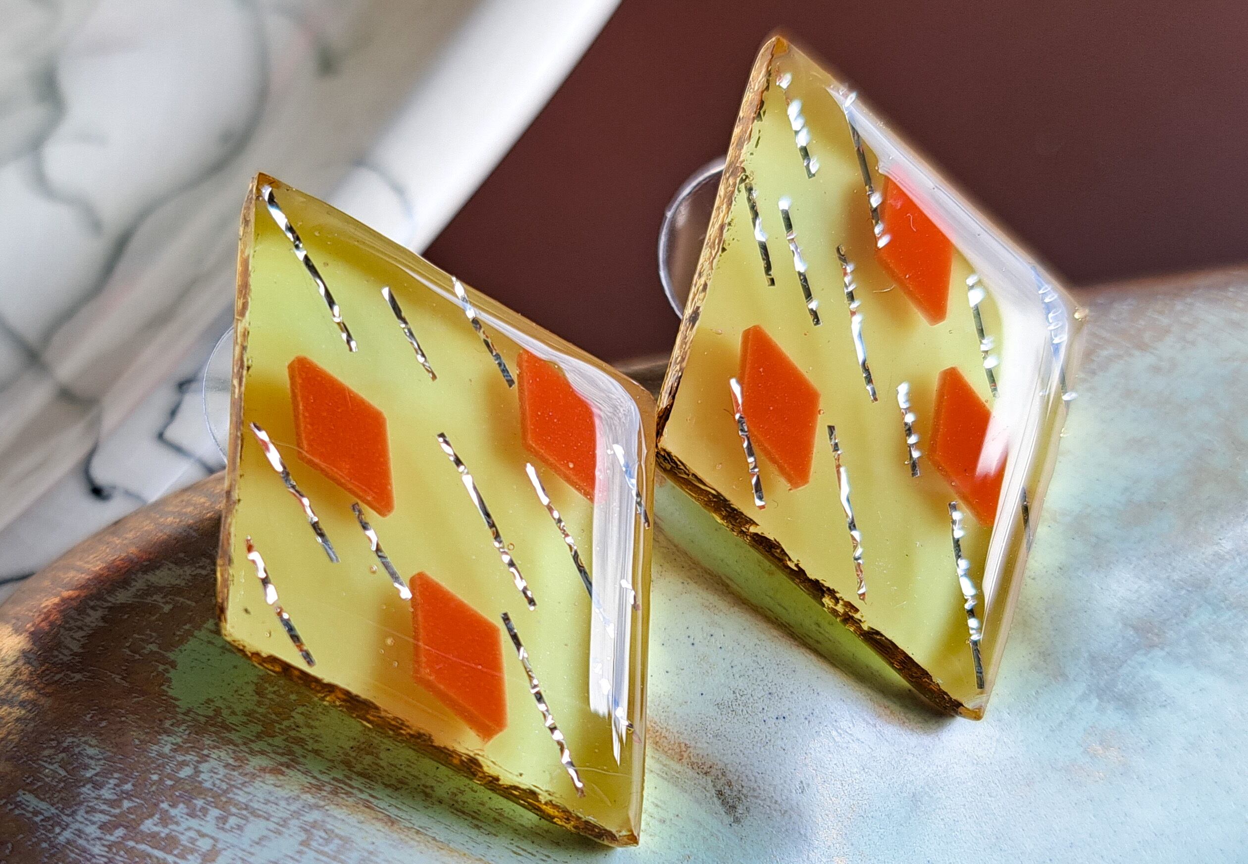 ◇◆Argyle-style diamond-shaped earring◆◇【Yellow】✴ アーガイルダイヤピアス・イヤリング/Rockabilly ロカビリー ロックンロール 50's 50s 1950s 1950's 50年代 ミッドセンチュリー スターバースト 1950年代 フィフティーズ アクセサリー ブーメラン さくらんぼ チェリー | me & Jimmy