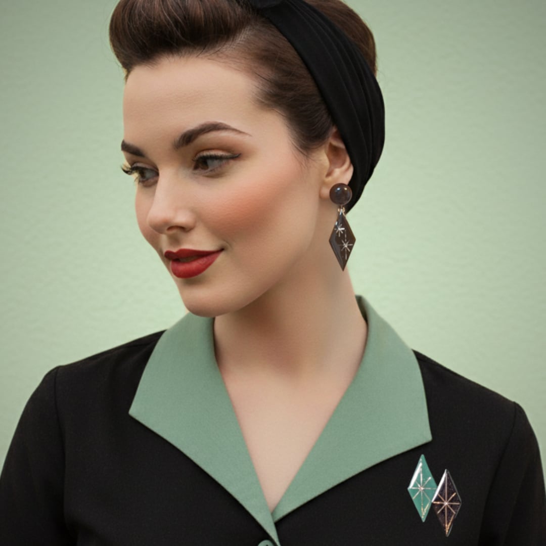 Atomic Starburst Diamond Broochアトミックスターバーストブローチ/サンバーストRockabilly ロカビリー ロックンロール 50's 50s 1950s 1950's 50年代 Rock 1950年代 40's 40s フィフティーズ アクセサリー ビンテージリプロ ヴィンテージ | me & Jimmy