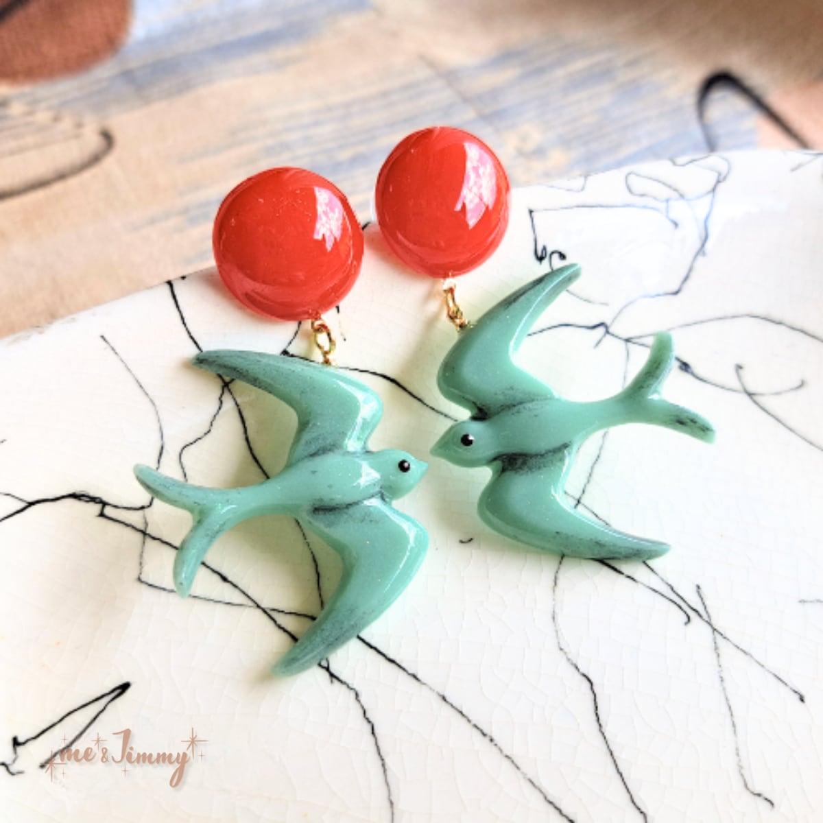 50'sらしいミントグリーンのツバメモチーフピアス・イヤリング。