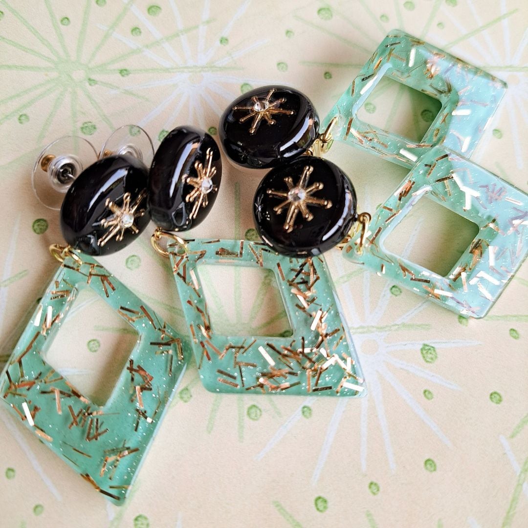 50's Starburst Dangling Diamond Earringssピンナップスタイルピアス・イヤリング【Mint Shake】/Rockabilly ロカビリー ロックンロール 50's 50s 1950s 1950's 50年代 ミッドセンチュリー スターバースト 1950年代 フィフティーズ アクセサリー ブーメラン | me & Jimmy
