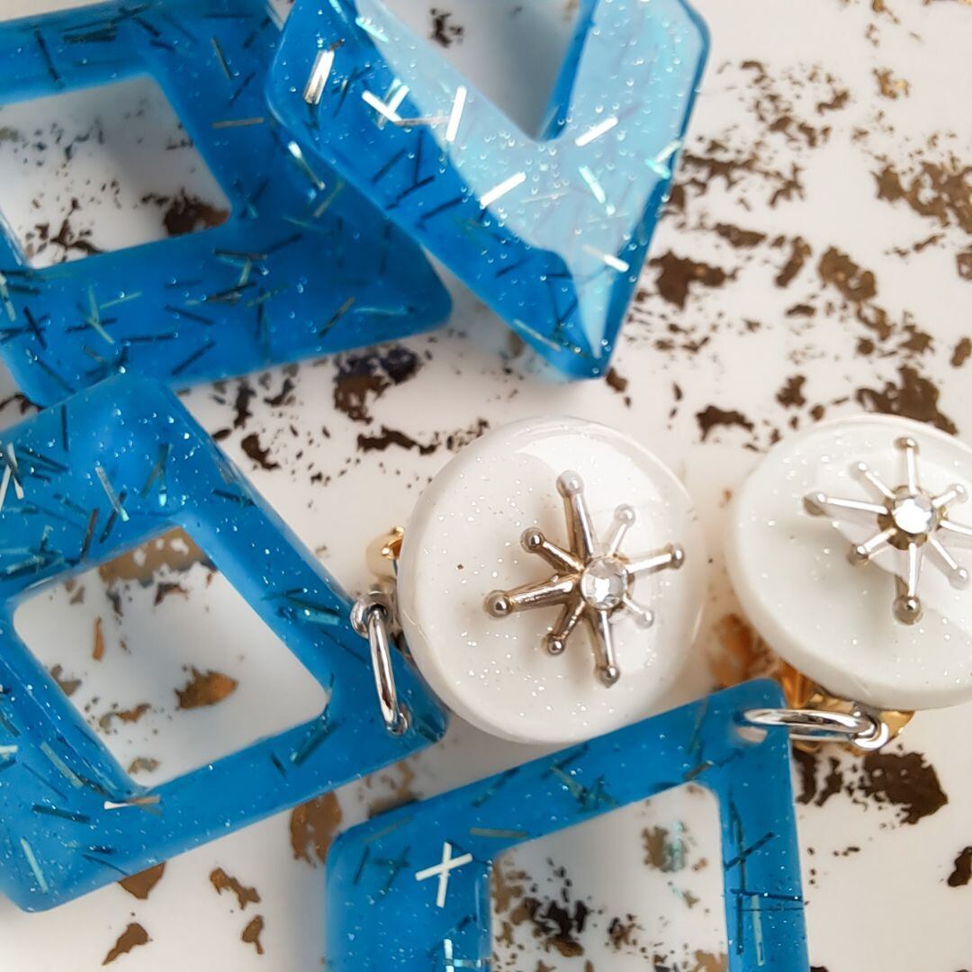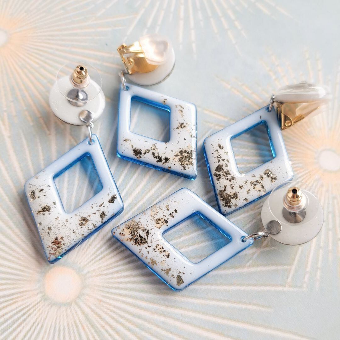 その煌めきは、はっきりとブルーの存在感を際立たせながらも、子供っぽくならずにレディな印象を与え、揺れるたびにアクリルパーツとは一線を画す奥行きを魅せます。