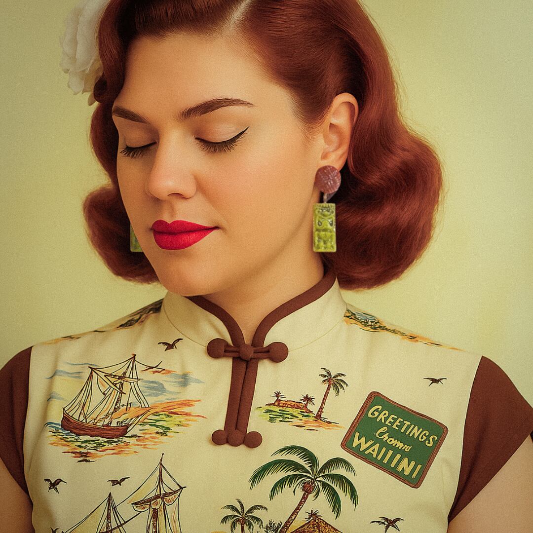 1940〜50年代のヴィンテージスタイルにぴったりのTIKIモチーフピアス・イヤリング。