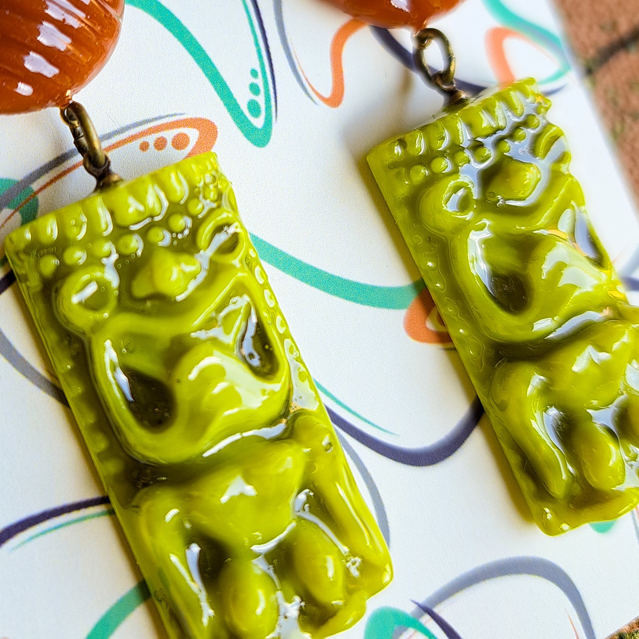 Vintage Style TIKI Earrings ピアス・イヤリング【DARK CITRON】/Rockabilly ロカビリー ロックンロール 50's 50s 1950s 1950's 50年代 Rock 1950年代 40's 40s フィフティーズ アクセサリー ハワイアン アロハ | me & Jimmy
